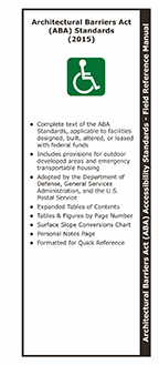 full text, tables, figures, and Advisories of the 2015 ABA Standards. Also included are a surface slopes conversion